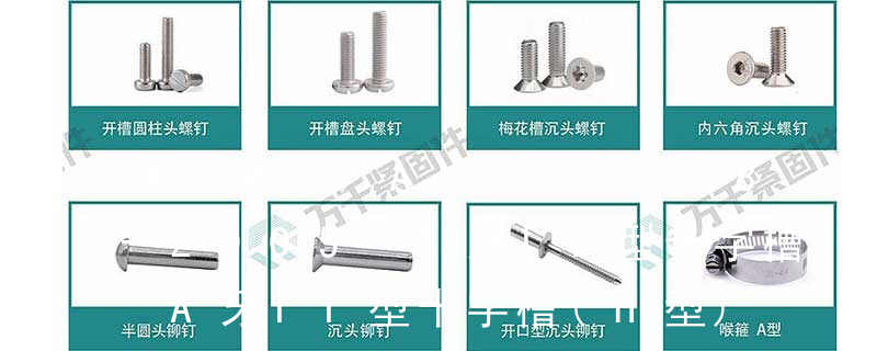 外扳擰:六角、六角法蘭面、六角凸緣、六角花形等;內(nèi)扳擰:一字槽、十字槽H型(Phillips)、十字槽Z型(Pozidriv)、十字槽F型(Frearson)、四方槽(Scrulox)、復(fù)合槽、內(nèi)花鍵、內(nèi)六角花形(梅花槽)、內(nèi)三角、內(nèi)六角