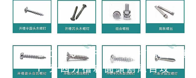 (鐵板牙自攻螺絲) B-2: Plastic Tapping Screw. (塑膠用,自攻螺絲) C: Wooden Screw : 木工螺絲 D: Drywall Screw :水泥墻螺絲 E: Self Drilling Screws鉆尾螺絲(不銹鋼鉆尾螺絲,復合材料鉆尾螺絲) F:膨脹螺絲,四片膨脹螺絲又