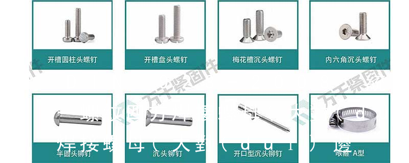 六角焊接螺母標(biāo)準(zhǔn)規(guī)定的是規(guī)格為M4-M16的焊接螺母,是適用于可焊接的鋼板連成的焊接螺母,其具體國(guó)標(biāo)GB(GB/T)見下圖。要注意正確讀取標(biāo)準(zhǔn)表中的數(shù)字,如螺紋規(guī)格D=M10,即材料為含碳量不大于0.25%的鋼,不經(jīng)表面處理的 法蘭面螺母(GB6177/DIN6923)、法蘭面螺母尼龍鎖緊螺母(DIN6926)、四角焊接螺母(DIN928)、六角焊接螺母(DIN929)、蝶帽(GB62、DIN315、美制)、K帽等。2、合金鋼國(guó)標(biāo)螺母的標(biāo)準(zhǔn)尺寸為5/16-4"。合金鋼國(guó)標(biāo)螺母包