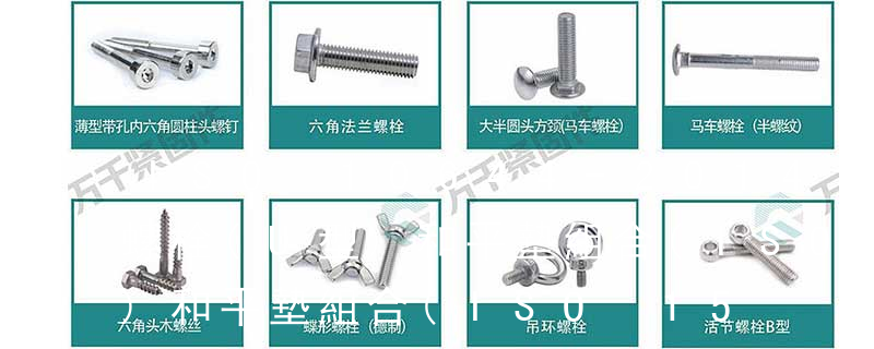 螺栓類:外六角螺栓、外六角法蘭面螺栓、內(nèi)六角圓柱頭螺栓、吊環(huán)螺栓、膨脹螺栓、沉頭內(nèi)六角螺栓、盤頭內(nèi)六角螺絲、馬車螺栓、雙頭螺栓、蝶型螺絲、活節(jié)螺栓、地腳螺 栓、U型螺栓、四角螺栓等 螺帽類:鉚螺母、吊環(huán)螺母、