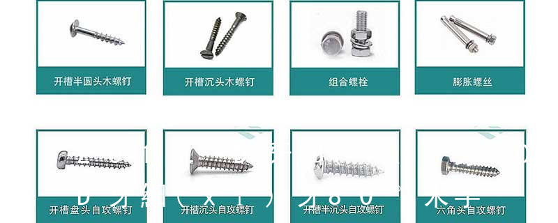 1、Flat:平頭 (鎖入后,頂部與工作件齊平)2、Oval:色拉頭、O頭、半沉頭 3、Round:圓頭 4、Pan:圓扁頭 5、Truss:大圓扁頭 6、Hex:六角頭 A-5:Finish Code/外觀處理。公制自攻螺絲 :于品名后方直接標(biāo)示 主要分類包括普通螺絲、機(jī)螺絲、自攻螺絲和膨脹螺絲三種。 有頭螺釘Cap screw 過去限于全牙的扣件。 六角頭螺釘Hex cap screw與大六角螺栓Hex bolt 顧名思義為頭部為六角型的外螺紋扣件,設(shè)計(jì)為使用扳手轉(zhuǎn)動。依照ASME B18.2.1標(biāo)準(zhǔn),六