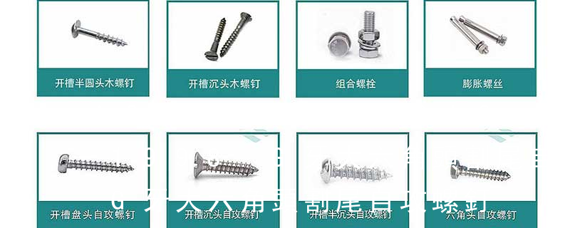 主要分類包括普通螺絲、機螺絲、自攻螺絲和膨脹螺絲三種。有頭螺釘Cap screw 過去限于全牙的扣件。六角頭螺釘Hex cap screw與大六角螺栓Hex bolt 顧名思義為頭部為六角型的外螺紋扣件,設計為使用扳手轉(zhuǎn)動。依照ASME B18.2.